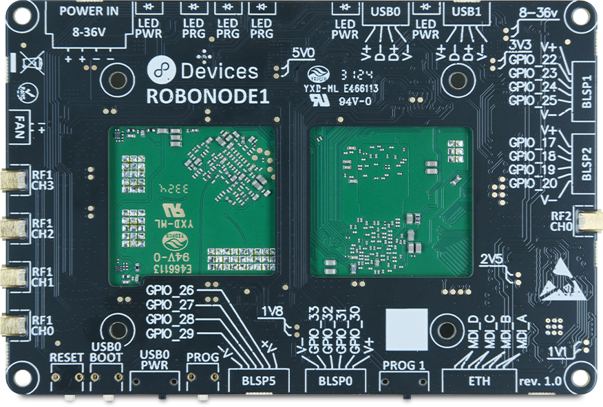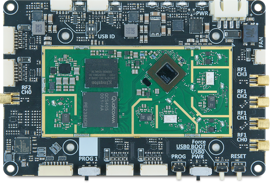 Robonode is a long-range, low-latency data radio built on the Qualcomm® QCS405 SoC and QCN9074 radio chip with 2360-3150 MHz and 4550-6630 MHz radios. Pre-loaded Robosoft firmware delivers powerful features like FEC, fast frequency shifting, and an improved IEEE 802.11ax implementation. These features make it a powerful solution for high-performance unmanned system projects.